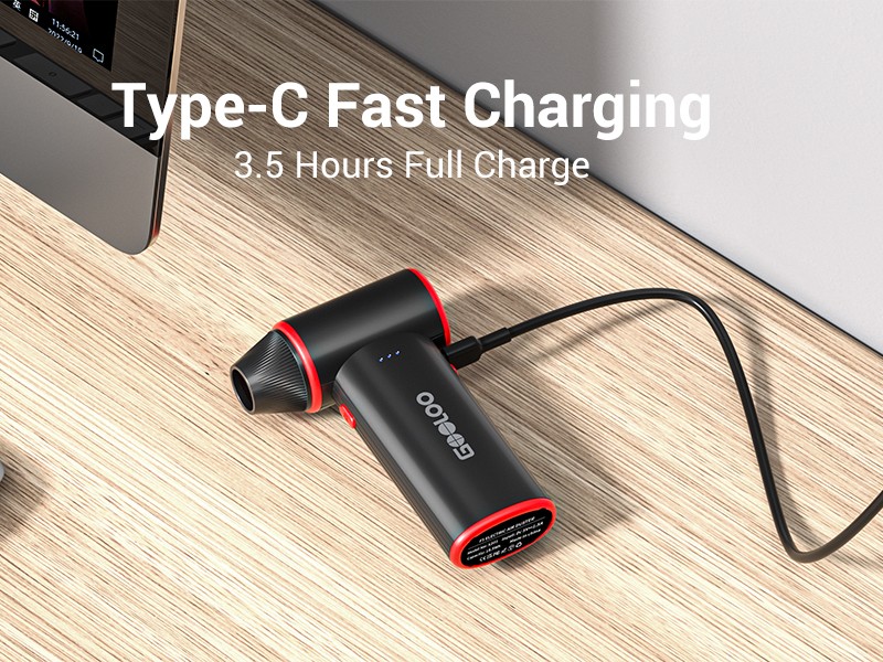 Аккумуляторный воздушный пылесос оснащен тремя регулируемыми регуляторами скорости ветра, включая щадящий режим (25 000 об/мин), средний режим (70 000 об/мин) и высокий режим (150 000 об/мин). Пользователи могут свободно переключаться в зависимости от цели уборки. Например, щадящий режим подходит для печатных плат, а средний и высокий режимы предназначены для очистки упрямой пыли на клавиатурах, автомобильных двигателяхили уличного оборудования.