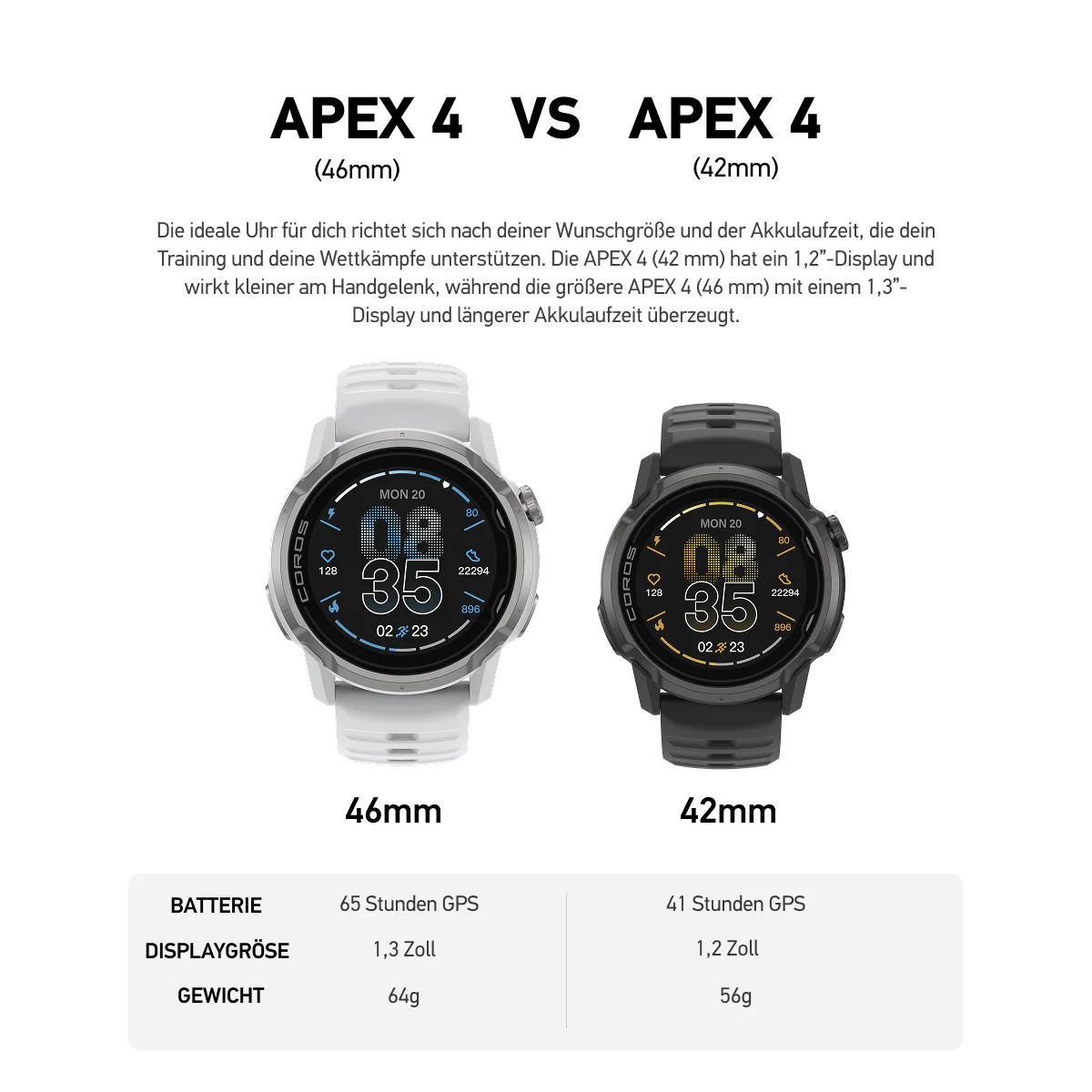 Coros Apex 4 был недавно был представлен в тизерах и теперь доступен для заказа на сайте непосредственно от производителя. Цена 46-миллиметровой модели составляет $479, а 42-миллиметровый вариант можно приобрести на $50 дешевле. Ожидается, что доставка займет от семи до десяти дней. Coros Apex 4 по сути своей являются смарт-часами и даже оснащены динамиком и микрофоном, что позволит Вам не только получать уведомления о Вашем темпе, но и записывать голосовые сообщения и, при желании, использовать Coreos Apex 4 в качестве Bluetooth-устройства громкой связи.