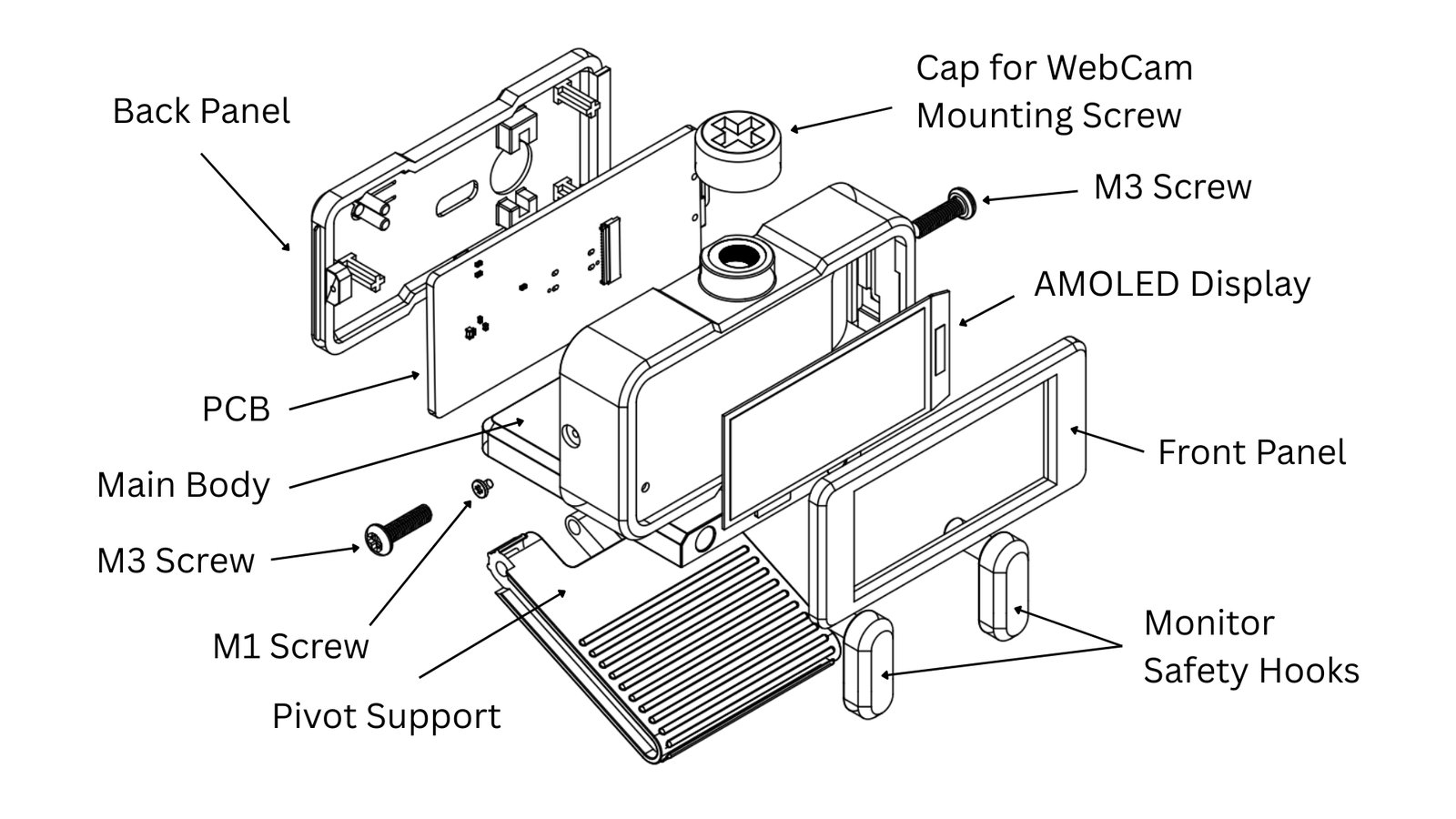 Устройство имеет размеры 68 x 60 x 54 мм и весит около 100 грамм. Питание и подключение осуществляется через USB-C, а конструкция крепления к монитору позволяет устанавливать веб-камеры в стопку. Все аппаратные и программные компоненты имеют открытый исходный код и выпускаются под разрешительными лицензиями, чтобы облегчить вклад сообщества. Специальная Serial IDE позволяет кодировать и отлаживать JavaScript в реальном времени, не вынимая карту microSD.