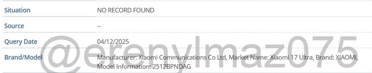 По слухам что новый перископический модуль содержит не простой телеобъектив, а настоящую камеру с оптическим зумом и переменным фокусным расстоянием, хотя это пока не подтверждено. Что можно сказать с полной уверенностью, так это то, что теперь мы можем ожидать появления Xiaomi 17 Ultra в Европе. Хотя большинство обозревателей уже предполагали это, глобальная модель с номером 2512BPNDAG была впервые обнаружена в базе данных IMEI, о чем свидетельствует скриншот ниже. Таким образом, мы ожидаем, что Xiaomi 17 Ultra появится в Китае в декабре, а во всем мире - в марте 2026 года