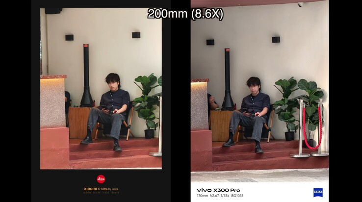 Нам больше нравится первая фотография от Vivo, потому что она заметно резче, хотя желтоватый фон стены лучше передан камерой Xiaomi 17 Ultra. На втором снимке ни одно из изображений не является идеальным. На X300 Pro лицо выглядит слишком обработанным искусственным интеллектом, в то время как на Xiaomi 17 Ultra оно выглядит мягким. Далее рецензент делится своими первыми видеозаписями из Гонконга. Похоже, компания Xiaomi проделала хорошую работу при переходе от оптического зума к цифровому, начиная со 100 мм.