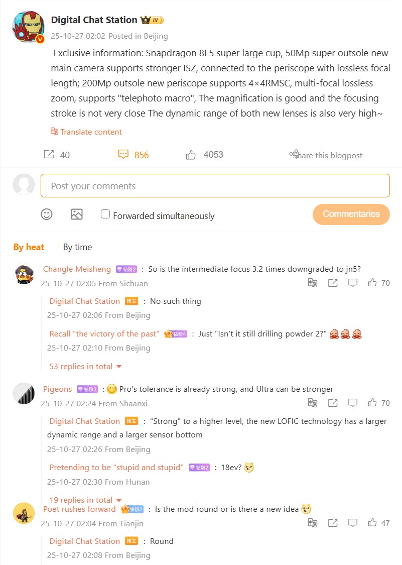 Это также подтверждает digital Chat Station. На этот раз он называет эту функцию "эксклюзивным физическим зумом", который, как утверждается, намного опережает конкурентов. Также упоминаются еще две функции камеры, которые уже есть у Oppo и Vivo в Oppo Find X9 Pro и Vivo X300 Pro: Впервые Xiaomi, вероятно, установит отдельный датчик цвета в виде мультиспектрального сенсора. С другой стороны, функция зум-вспышки, известная по моделям Vivo X300 Pro и Vivo X200 Ultra скорее всего, будет на борту, которая может регулировать интенсивность и цветовую температуру в соответствии с выбранным фокусным расстоянием