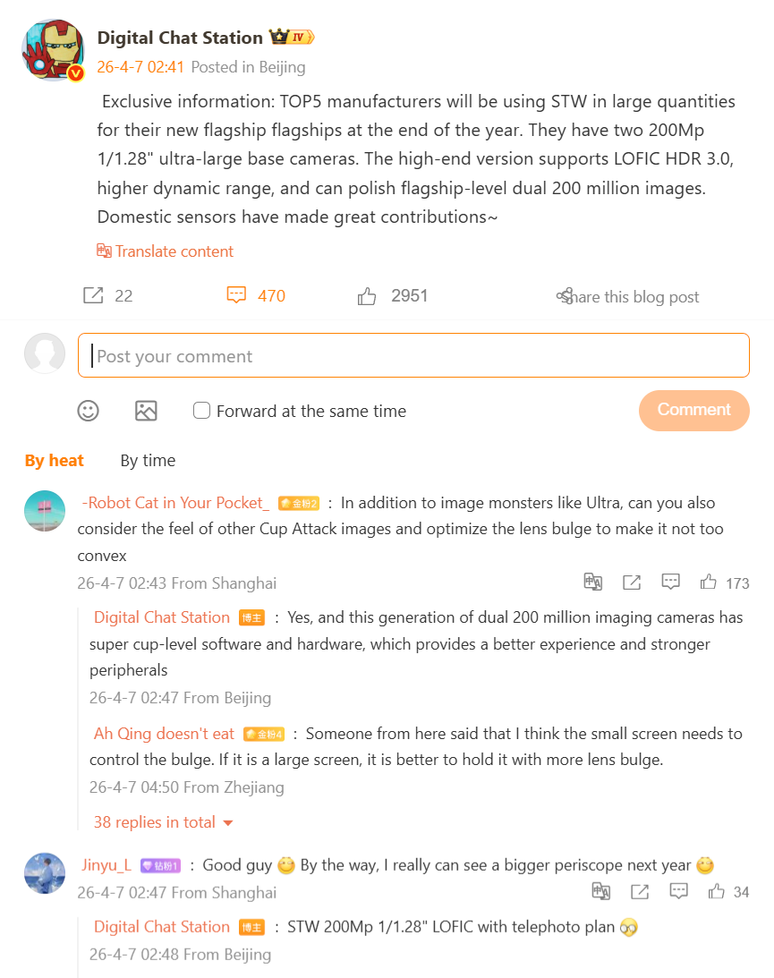Будет ли выпущен Xiaomi 18 Pro будет ли он более дешевой версией Oppo Find X9 Ultra и Vivo X300 Ultra? По крайней мере, это все больше похоже на то. Уже давно известно, что компания Xiaomi тестирует прототипы преемников Xiaomi 17 Pro с двумя 200-Мп сенсорами. До сих пор двойная установка 200 МП была эксклюзивной особенностью как Vivo X300 Ultra, так и грядущего Oppo Find X9 Ultra. Несколько часов назад известный китайский утечкатор Digital Chat Station прокомментировал пятерку крупнейших китайских производителей смартфонов, в которую, помимо Xiaomi, входят Huawei, Honor, Oppo и Vivo.