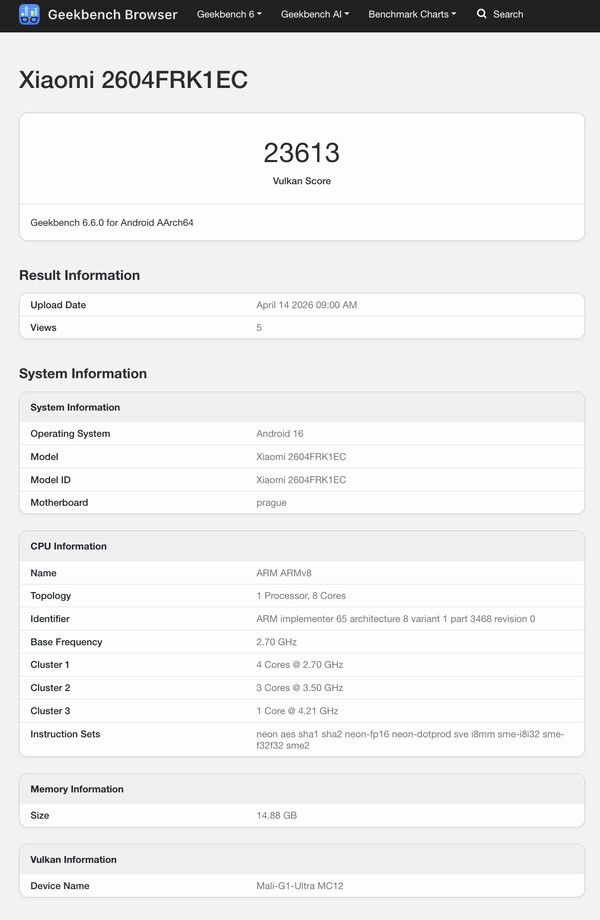 Между тем, производительность процессора находится на уровне того, что мы привыкли ожидать от Dimensity 9500 и его окта-ядерного чипсета. Таким образом, Redmi K90 Max обменивается ударами с такими современными флагманами, как Galaxy S26 Ultra, Xiaomi 17 Ultra и OnePlus 15 (текущая цена $899 на Amazon). Geekbench показывает, что Xiaomi планирует предложить Redmi K90 Max с 16 Гб оперативной памяти.