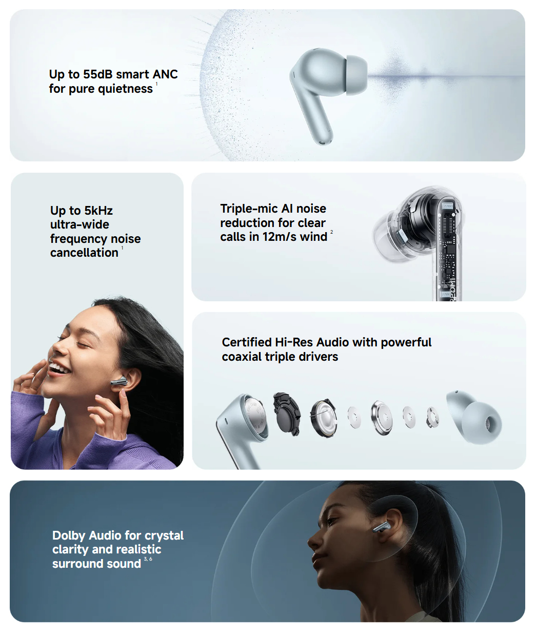 Redmi Buds 8 Pro будут доступны во всем мире в цветах Cloud White, Glacier Blue и Obsidian Black, все с аккумуляторами емкостью 54 мАч и 480 мАч внутри соответствующих зарядных кейсов. Обеспечивая до 8 часов автономной работы на одной зарядке, Xiaomi также устанавливает модем с поддержкой Bluetooth 5.4 и три микрофона на каждый наушник, которые помогают обеспечить активное шумоподавление (ANC) до 55 дБ.