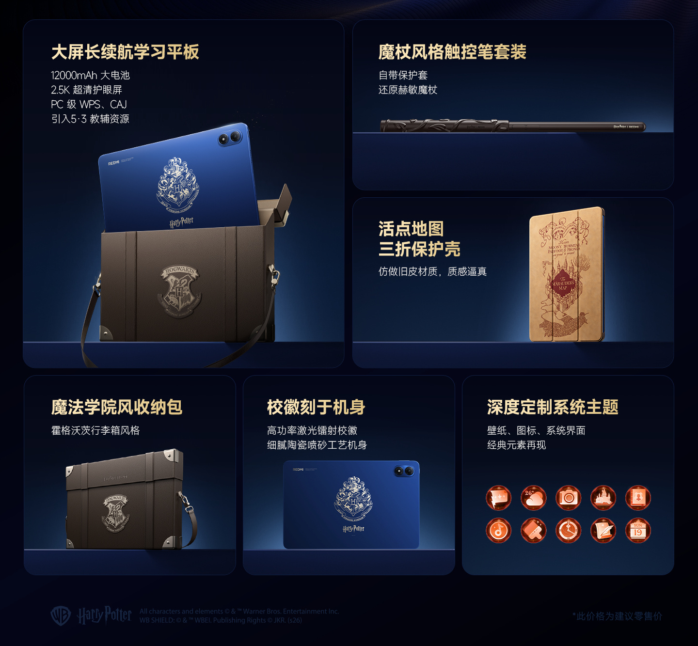 Аналогично, все варианты Redmi Pad 2 Pro оснащены дисплеем с разрешением 2,5K и частотой 120 Гц. Однако в версии Harry Potter Edition добавлено несколько эксклюзивных аксессуаров, таких как чехол для переноски, чехол-фолиант и даже стилус, напоминающий палочку. Более того, Harry Potter Edition имеет эксклюзивную синюю отделку с логотипом Хогвартса на задней панели.