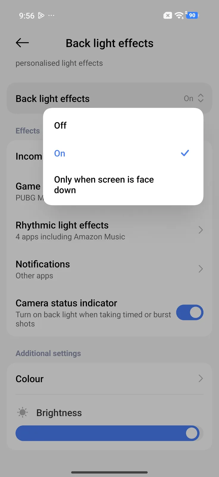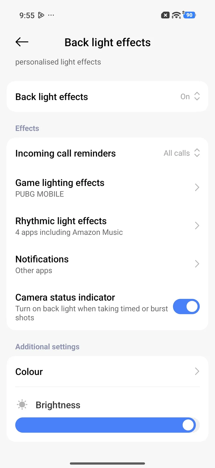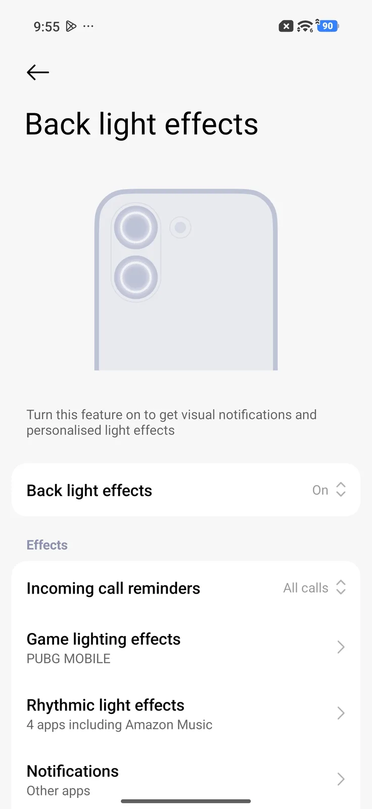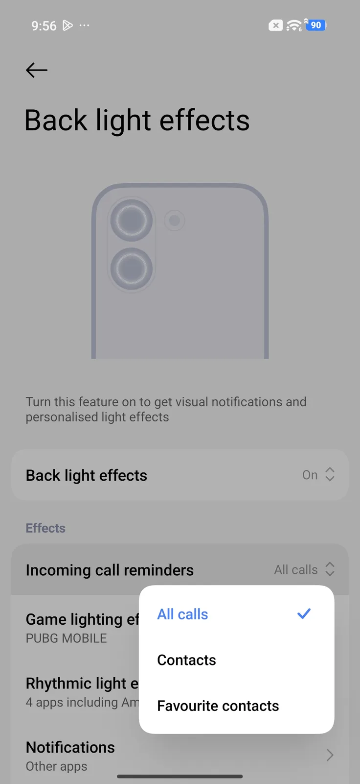 Меню настроек предлагает множество опций, позволяющих назначить определенные световые анимации для определенных приложений или контактов.