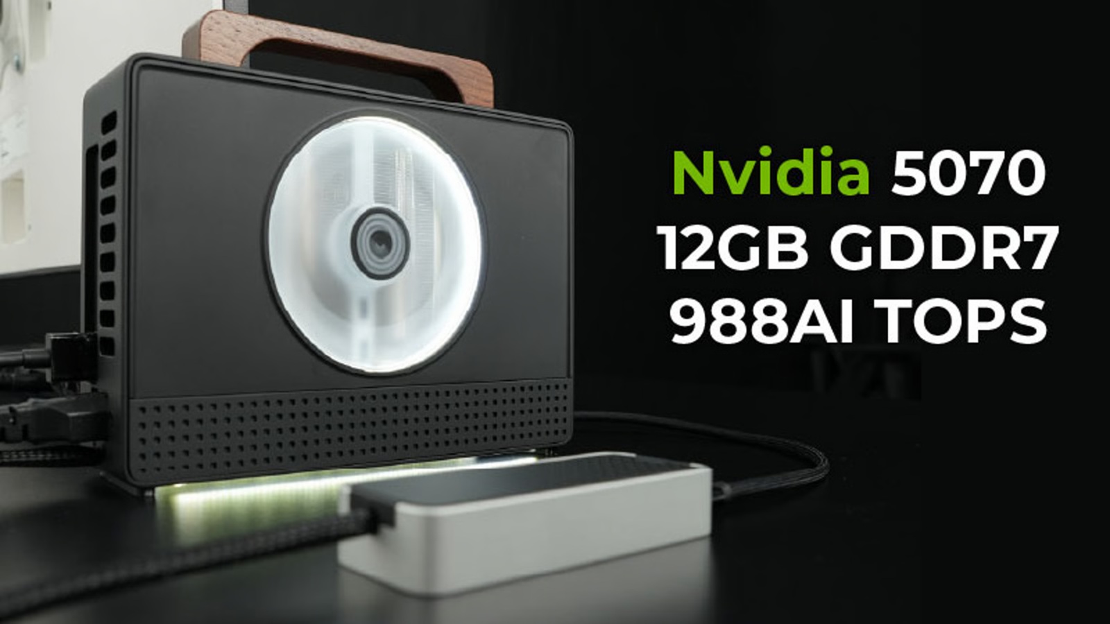 В резюме кампании, размещенном на сайте Backerkit перечисляет Nvidia GeForce RTX 5070 и RTX 5060 Ti конфигурации, корпус объемом 1,86 л, обратная совместимость и заявленная цифра до 988 AI TOPS. FabScene сообщает, что версия RTX 5060 Ti оснащена 16 ГБ памяти GDDR7, а модель RTX 5070 - 12 ГБ GDDR7. В том же отчете говорится, что версия 5060 Ti больше ориентирована на создателей и локальные нагрузки ИИ, в то время как RTX 5070 больше нацелена на игры.