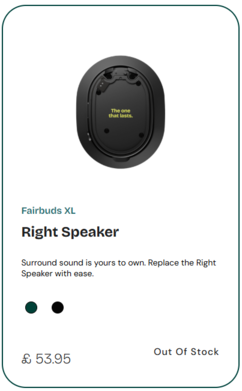 Тем временем, в интернет-магазине Fairphone появилось множество запасных частей. Например, пара новых драйверов для обеих моделей Fairbuds XL стоит €101,90 / £88,90, причем правый драйвер стоит немного дороже, поскольку в нем находится часть электроники. Среди других перечисленных компонентов - сменная батарея (€19,95 / £17,95), амбушюры (€14,95 / £12,95), а также новое оголовье, кабель и тканевый чехол для оголовья, цены на которые варьируются от €15 / £13 до €20 / £18