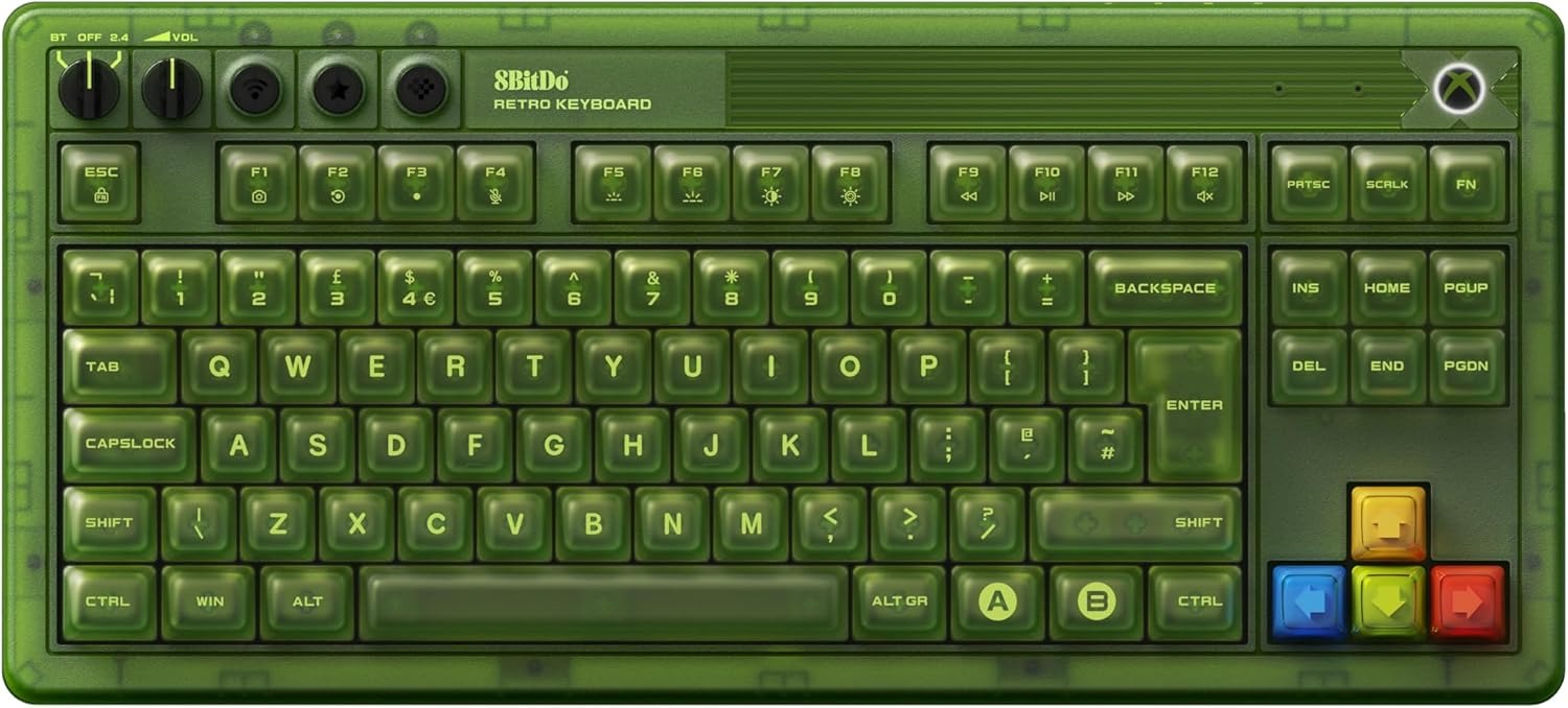 В дополнение к американской (QWERTY), 8BitDo Retro 87 Mechanical Keyboard Xbox Edition теперь доступна в раскладках UK (QWERTY), DE (QWERTZ), FR (AZERTY) и ES (QWERTY). Клавиатура Retro 87 с британской раскладкой ISO продается на Amazon по цене £105что немного больше, чем версия с американской раскладкой, цена которой составляет £99,99, но в настоящее время доступна за £96,29.